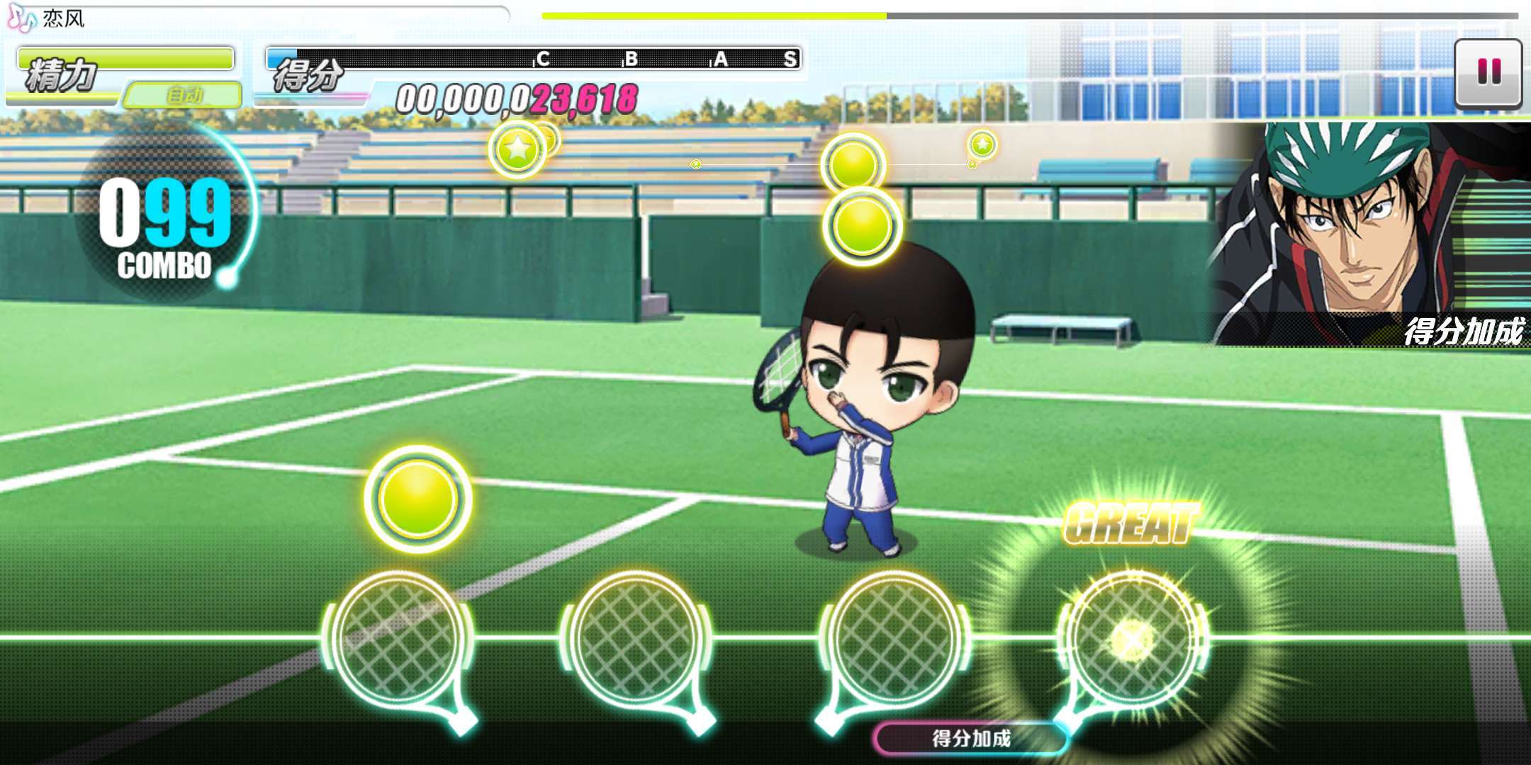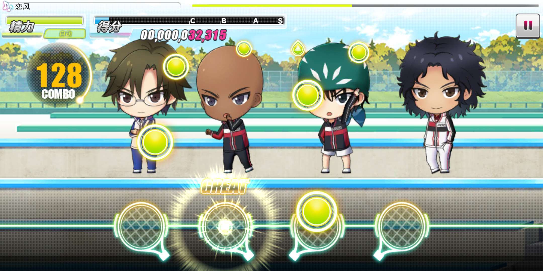 在该模式下,系统会自动完成玩家的所有节奏点点击操作,选手技能与应援技能均能正常生效。不过自动通关存在一个缺点,即所有节奏点的评分只能达到GREAT级别,无法获得SSS评价。