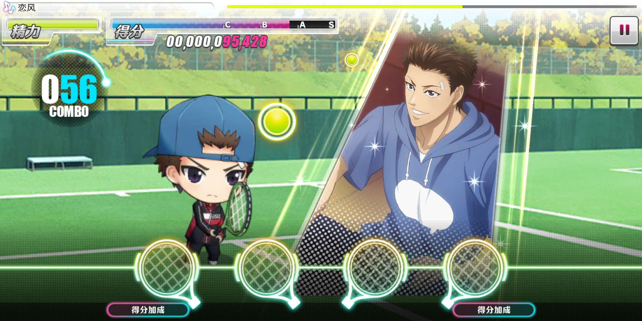 根据这个情况,玩家在应援队伍的选择上,可以选择具有保持精力技能的选手剧情卡,这有利于玩家顺利通关曲目。