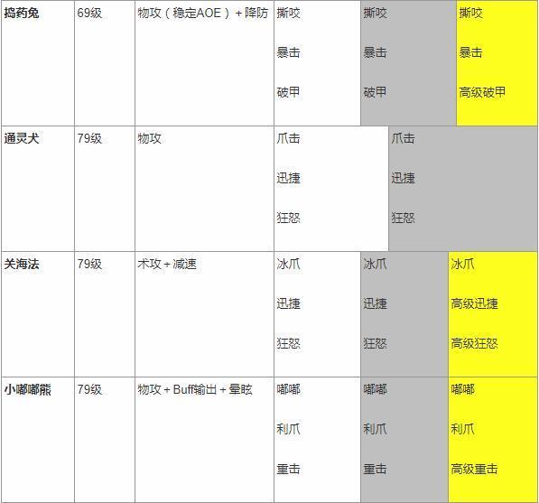 抱抱兔、熔岩结晶、小田鸡这三者归属于萌新过渡期的宠物,已过69等以后,大部分全部会存在上位替换版。这三只所酿成的伤害也不过于足够,一般来说后期也不会再用了。