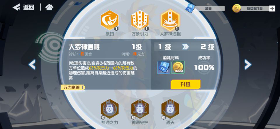 大招能对自身两格范围内造成全面伤害,不再局限于十字格区域,而且距离越近伤害越高,配合走位使用效果更佳,尤其在敌方boss面前释放时表现极好。被动技能的第一个效果是提升自身暴击率,似乎使用棍棒类武器的角色都比较擅长暴击,而高暴击率意味着它具备强劲的暴力输出能力。
