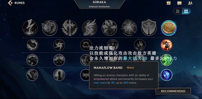 每当携带该效果的英雄的攻击命中敌人时,都会为自身永久提升30点最大法力值,此效果最多可叠加至300点。