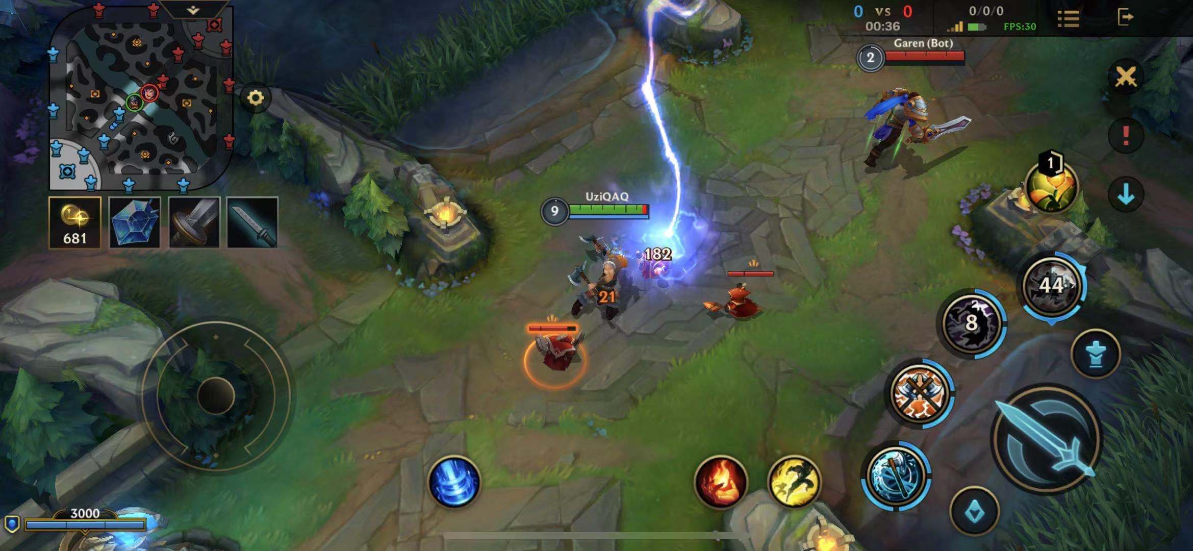 奥拉夫在二级时处于相对弱势的过渡阶段,此时只需用一技能远程消耗敌人即可。
