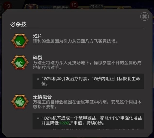 必杀技3的释放历程时间更加长,而且也特别炫酷,灭亡所有的能力把握在万磁王杀手上。