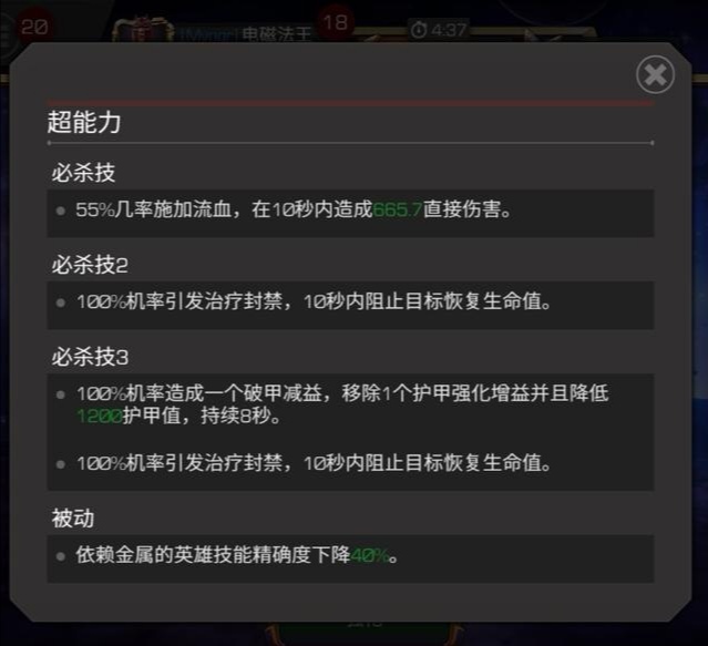 技能说明中并未提及“出血”特效,实际上这是万磁王超能力自带的效果,触发概率为55%,能在10秒内持续造成伤害。