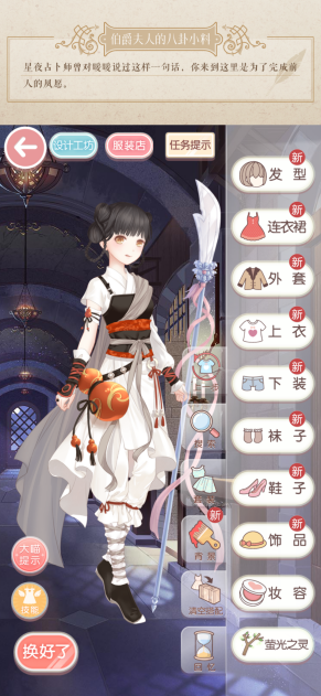 7、如果大家没有大喵提示里提到的那些剩余衣服,那么可以自行搭配,但务必保证风格统一,且不能随意添加多余的装饰,不然在比拼环节会被扣分哦。
