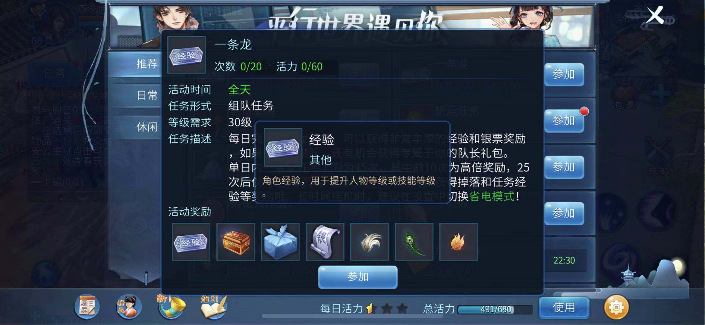 建议玩家组建固定队伍共同参与一条龙玩法,否则低等级玩家可能难以组到相应队伍;进行一条龙前两轮时,推荐开启双倍经验,以获取更多经验收益。
