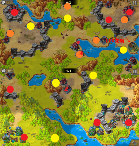 与此同时,在将敌方兵力调离城池后,我们立即出动第二路军队,趁敌军出城之际迅速对其城防发起反击。如此一来,敌军主力难以及时回援,我们便能顺利夺取首座城防。占领城防后,我们可借助敌方兵营部署公主以生成小兵,从而稳固该区域的局势。