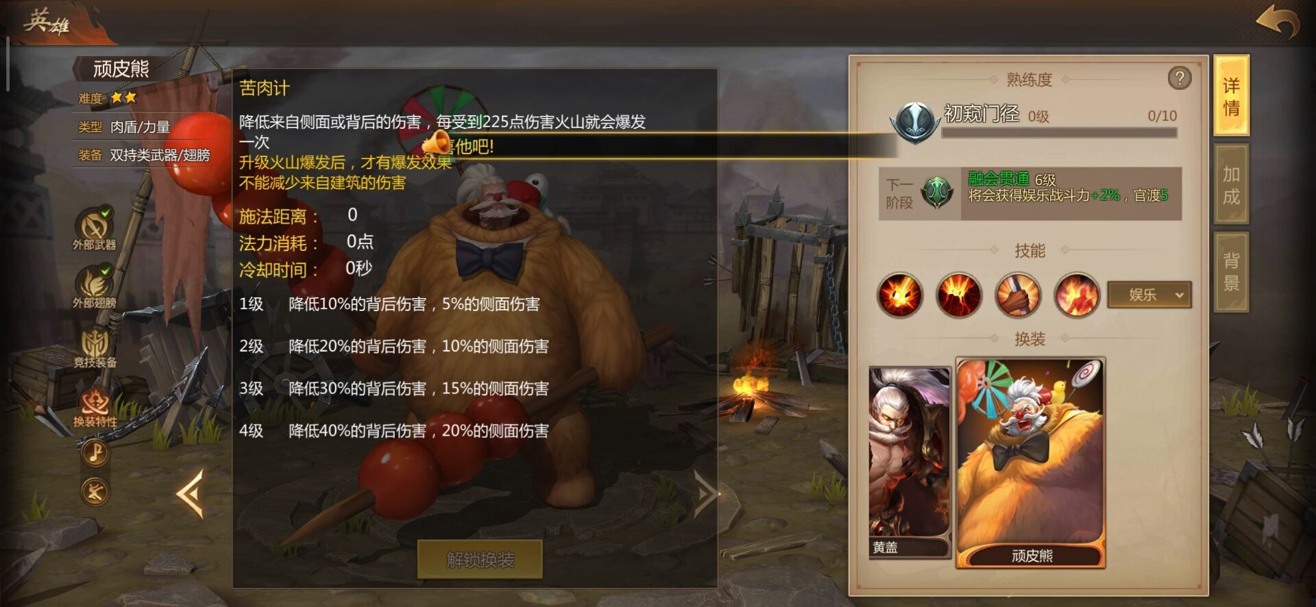 黄盖在游戏中是肉盾型角色,输出能力不算突出,但他的扛伤能力却很少有英雄能与之媲美,尤其是其三技能“苦肉计”,能大幅减少黄盖背面和侧面所受的伤害,因此无论是想留住试图逃跑的黄盖,还是偷袭状态完好的黄盖,都不是明智的选择。