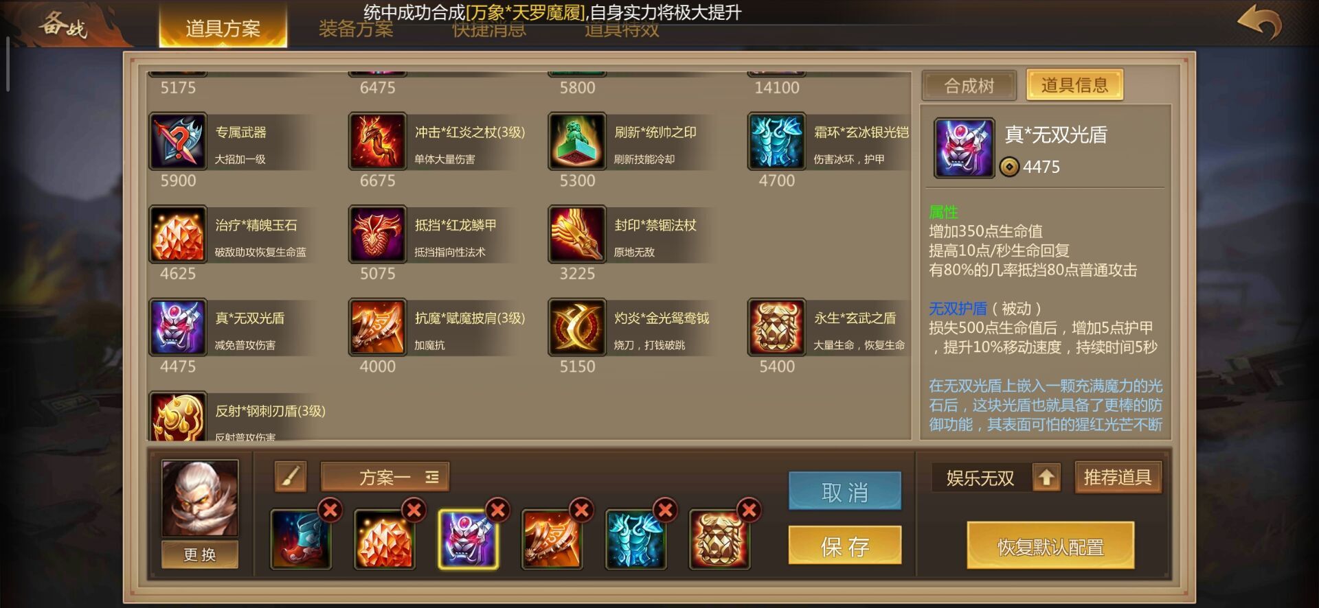 后期团战会变得频繁,最后两件装备肯定得选适合团战的防御装,推荐银光铠和玄武盾。这两件装备不仅能让黄忠更肉,还能有效干扰周围敌军的状态,帮助队友迅速打赢团战,一举拿下胜利!