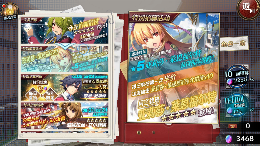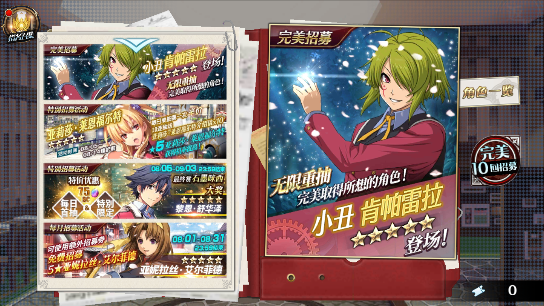 (3)游击士币招募:这是活动专属的招募方式,参与招募有机会获得最高稀有度为5星的角色,角色将通过盒子形式或随机形式进行发放。