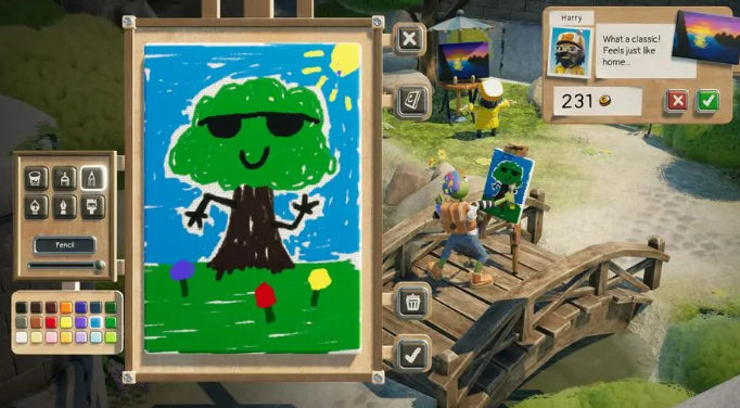 这款手游的玩法很有特色:和其他游戏不一样,它主要围绕绘画与经营展开。玩家能在自己的工作室里自由创作,完成画作后,可在多个场景进行售卖。不过在售卖过程中会碰到不少NPC,他们会对玩家的作品进行点评,并给出综合分数。