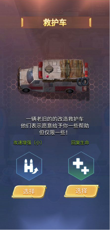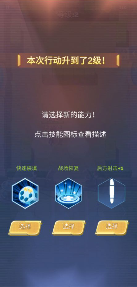每次升级时都会出现三个可供选择的技能选项,这在副本推进的过程中起着关键作用。就像下方展示的三个技能图标那样,起初优先选择装填相关的升级会更好,因为这样后续无论是冰冻还是炙热类技能都能从中获益;此外,提升射击的前向范围或增加连续射击能力也是不错的选择。另外需要注意的是,每隔几关会遇到救护车,要是我们的血量不够充足,还是应该优先选择回复生命值。