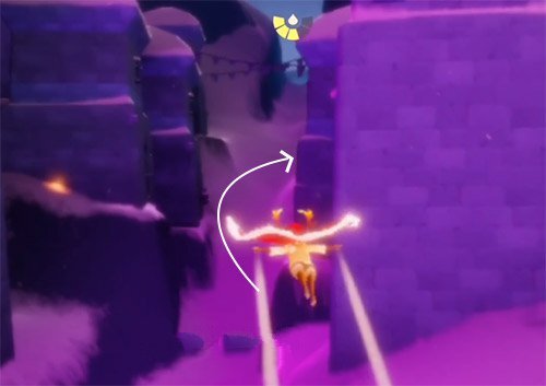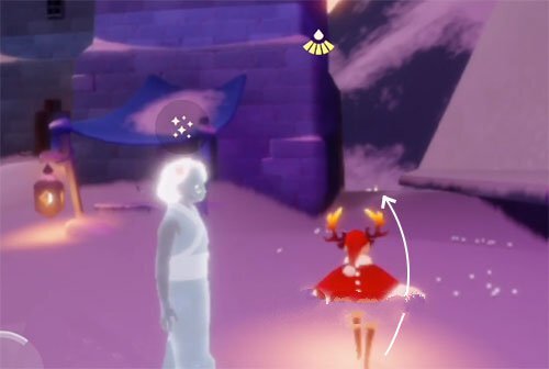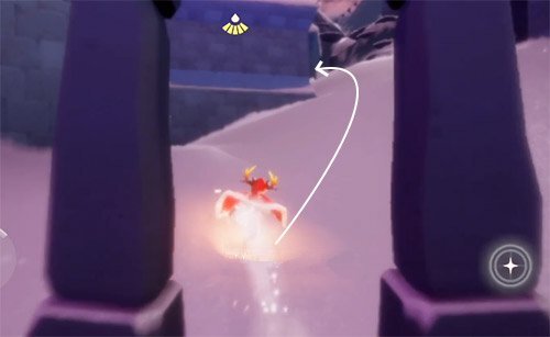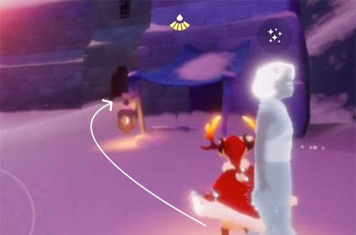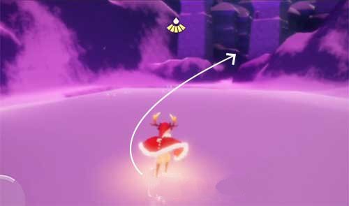 同样在向导附近,往左边看,找到像下面图片里那样的紫色石柱门,这里也是进入梦想季的入口,接着走到这个地方。