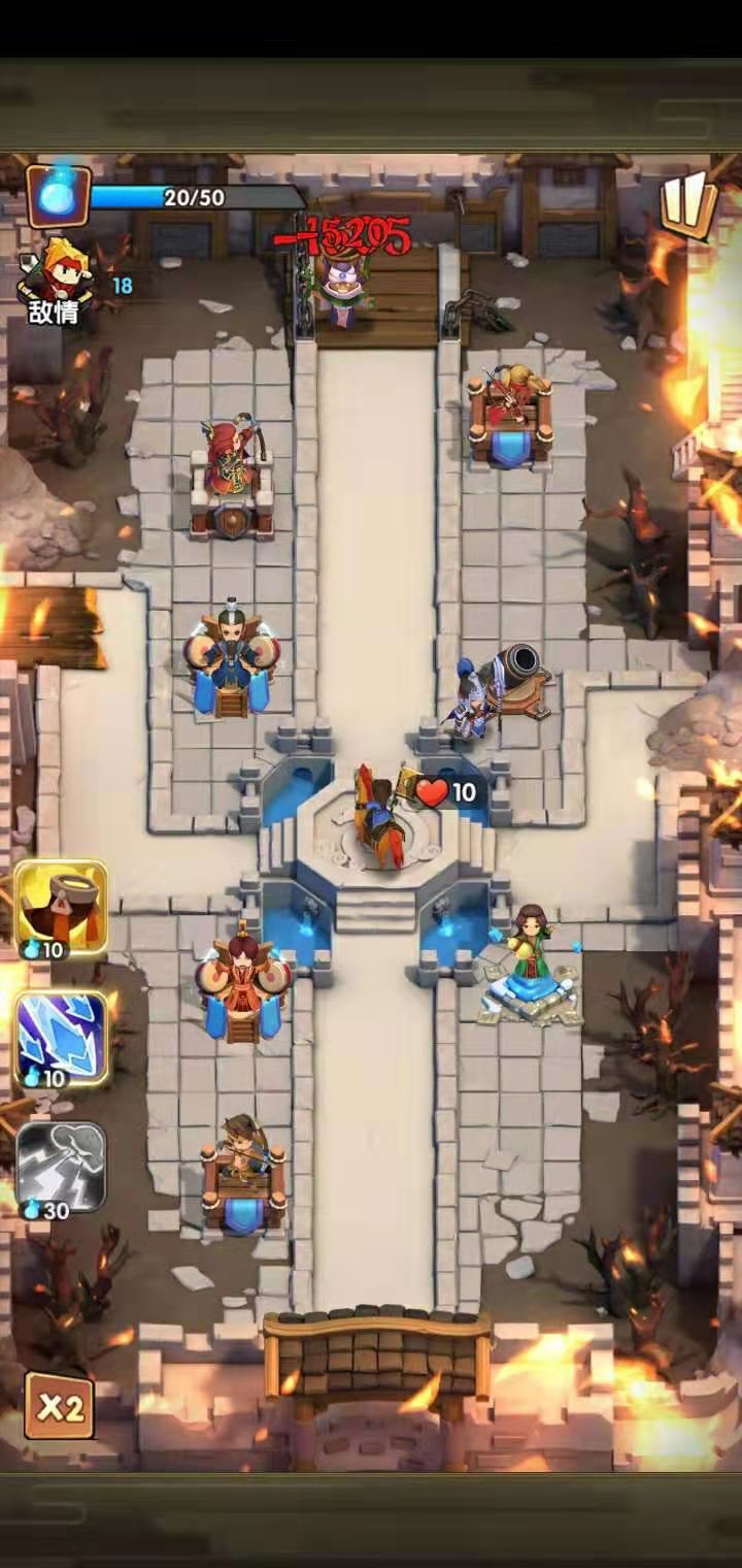 同时军师和弓手就要放置在法师或者炮手的两旁。当法师和炮手顺利降低敌人的移动速度时,军师和弓手要抓准时机攻击。