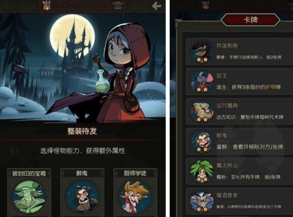 由GiantGames开发的独立单机卡牌构筑冒险游戏《月圆之夜》,玩家可选择小骑士、小女巫等七种职业,深入神秘黑森林追寻失踪的外婆;也能通过小红帽日志,重温儿时与小木匠一同经历的城堡冒险。探索途中会遭遇各类随机事件与剧情,收集各职业专属卡牌和祝福,挑战百种特色怪物,最终揭开黑森林与城堡深处的秘密。近期游戏新增了契约师职业(主线玩法)与小游侠(小红帽日志玩法),同时大幅优化小红帽日志机制,加入大量新卡牌、怪物、祝福、拼图,以及多项数值平衡调整。接下来,小编将为大家带来该版本新增内容的体验分享~