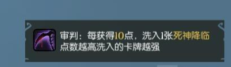 审判是契约师的关键机制,特效为每总计10点往牌库里洗入一張“死神到临”卡片