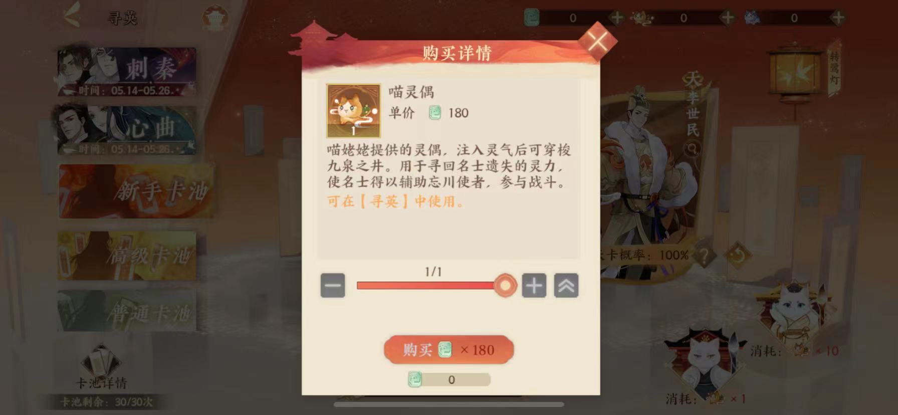 另外,即便玩家抽卡次数未达30次,也有一定概率获得李世民——这是系统为新手玩家设置的特例:前五十次抽卡时,玩家获取天卡的概率会大幅提升,而李世民正包含在这些天卡池中。