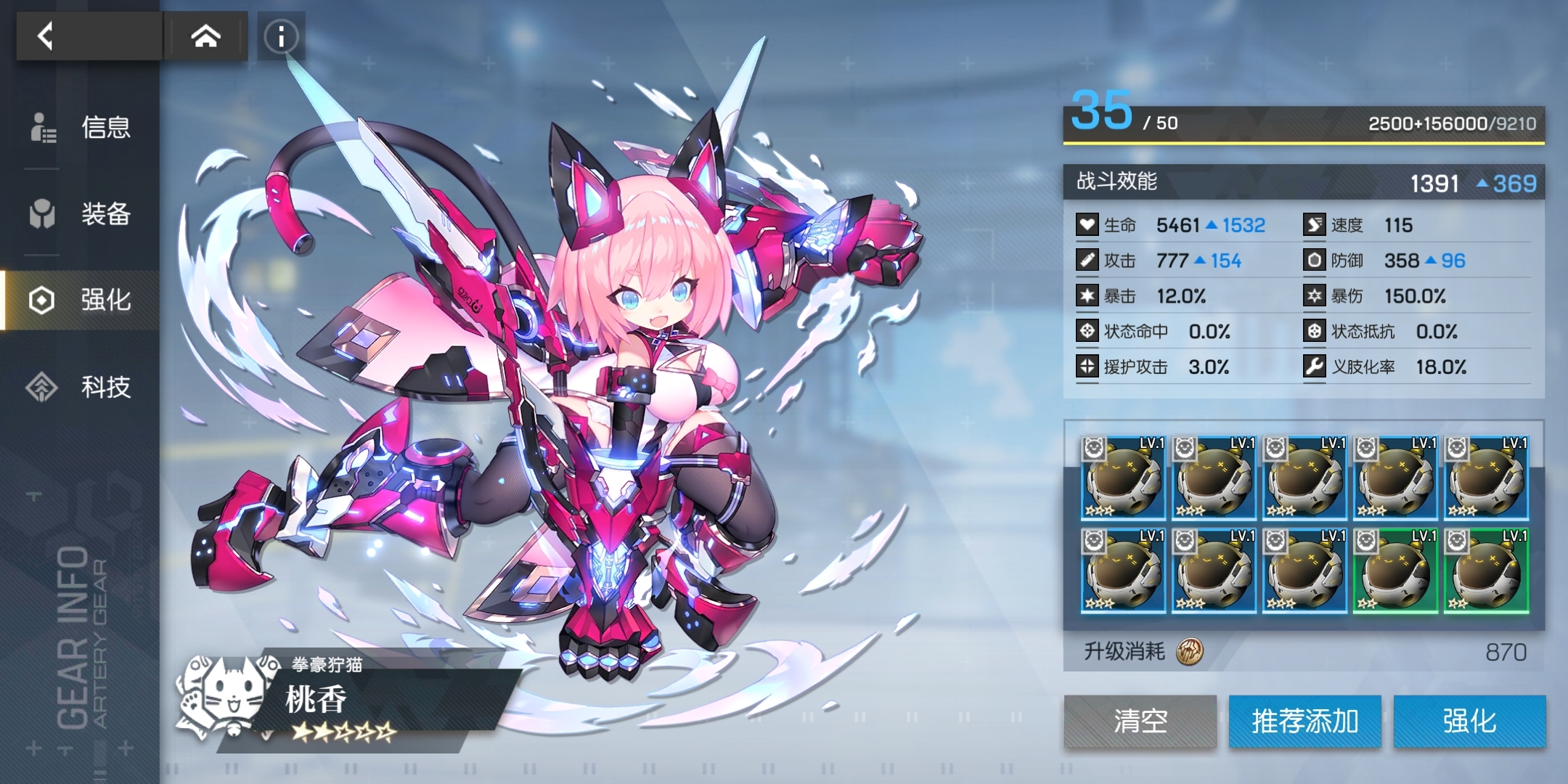 升级战姬能够提升攻击、防御与生命属性,除了通过通关副本获取少量经验外,玩家还可以直接利用猫球或者其他角色来增加战姬的等级。