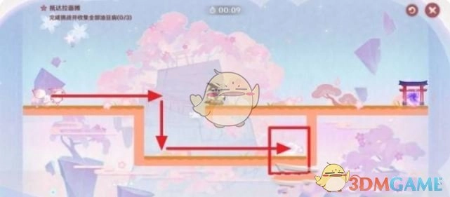 8、在第三个场景里,按照下图所示路线拾取油豆腐,接着切换至美梦状态,然后进入拉面店就能顺利过关。