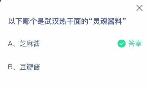 以下哪个是武汉热干面的“灵魂酱料”?这就是上面所讲内容。支付宝蚂蚁庄园2025年2月19日答案最新,更多精彩内容,点击关注爱帮下载,小编会持续为您更新!