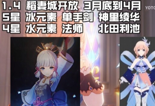 角色:神里绫华(限定)/??、??、北田利池(水法)。