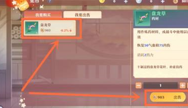 接下来,挑选你打算售卖的物品,然后点击下方的“出售”按钮进入。如图所示