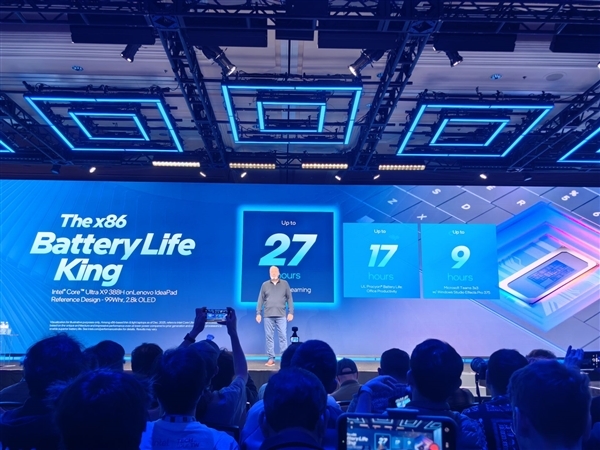 对于其中最顶级的X9 388H型号,Intel方面表示,和Lunar Lake相比,该处理器的多线程性能提升幅度最高可达60%,游戏性能的提升更是高达77%,AI性能则实现了两倍的增长,而在电池续航表现上,更是能达到长达27小时的水平。