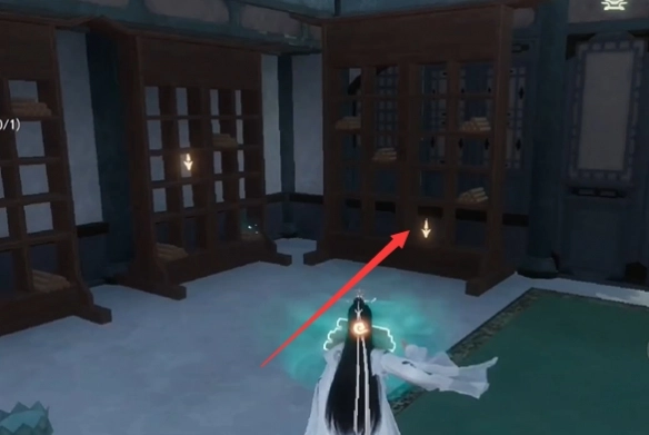 4、把书简放在左上角的书架上。
