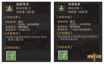 战盟传功时间设定在12点至24点,需与同战盟的盟友开展传功。传功存在次数限制,建议约上几位固定好友,每天按时传功,如此效率会更高。实际上,最佳时机是在战盟盛宴期间进行传功,此时大家都处于同一地图,能同时获取这两个活动的经验,一举两得!