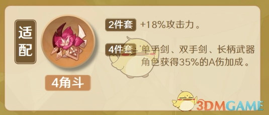 2、四件套效果:若装备该圣遗物套装的角色使用单手剑、双手剑或长柄武器,其普通攻击造成的伤害提升35%。