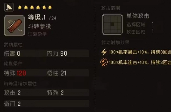 玩家能够选择以乞丐出身,随后前往君山乞丐的门前,此时会遇见小顽童,与之进行一场打斗。打完架后,玩家可把踩脚趾教给小顽童,一旦交付完成,立刻就能得到斗转参横。实际上,这是一本额外的秘籍,对于玩家来说,获取它之后就能提升自身实力,带来诸多辅助效果。