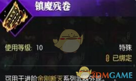 1、玩家需通过活动来获取道具镇魔残卷,然后进入外观成长界面。