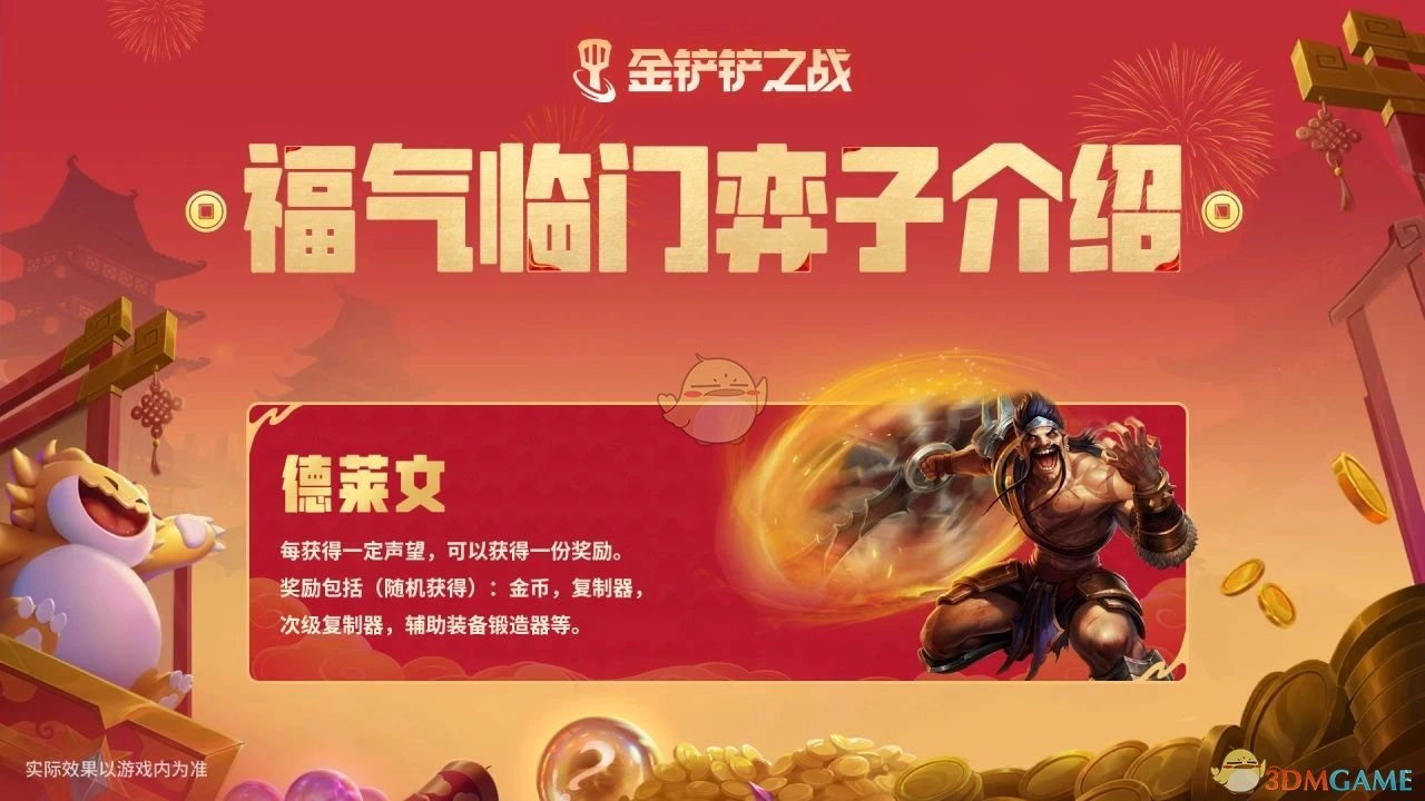 金铲铲之战中恭喜发财德莱文表现如何?这是一款趣味性十足的自走棋游戏,游戏内存在众多游戏角色,每个角色都具备独特的技能与特点。想必不少游戏玩家对游戏里的德莱文还不太了解,接下来,小编将为大家详细介绍金铲铲之战恭喜发财德莱文的相关情况,希望能为屏幕前的游戏玩家提供帮助,欢迎大家前来阅读。