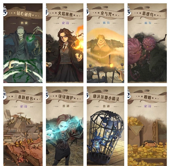 基础魔法卡包含:火焰熊熊、充气咒、恶婆鸟、钻心剜骨、三本妖怪书、统统加护、康沃尔郡小精灵以及嗅嗅。