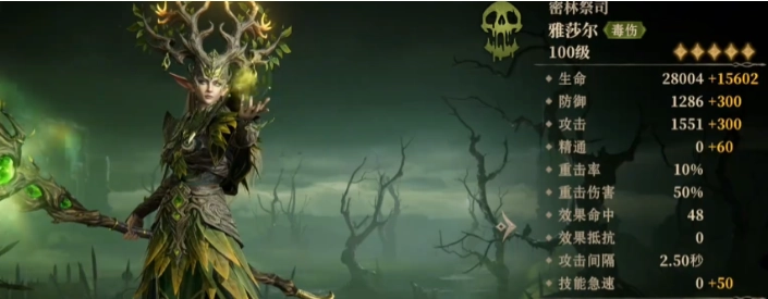 倘若有人能在龙息神寂里制造出持续且致命的毒伤,那密林祭司·雅莎尔绝对是相关榜单上的常客。身为魔力极高的德鲁伊,她不但能凭借战技“刚愎”对敌人造成三次毒伤,还能借助强大的被动技能将敌人一举击溃。她的“毒伤”效果,会让敌人每次遭受攻击时都感受到致命威胁,毒伤的层数越高,所造成的伤害就越发惊人。