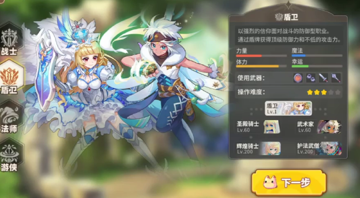 在游戏里,剑盾所代表的角色是盾卫。盾卫存在两个不同的分支,其一为纯防御盾卫,这类盾卫通常会径直进化成为圣骑士;其二则是武术家。