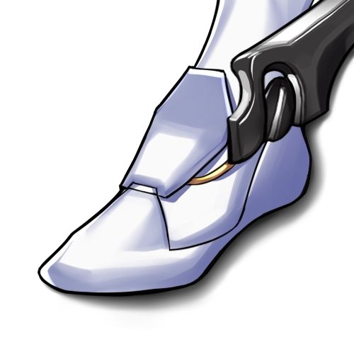 由艾吉斯支部 - 多瑙支部研究室专门为铁鸦成员卡洛琳打造的轻式足甲,在造型上为满足使用者的需求,选用了更为花哨的方案。