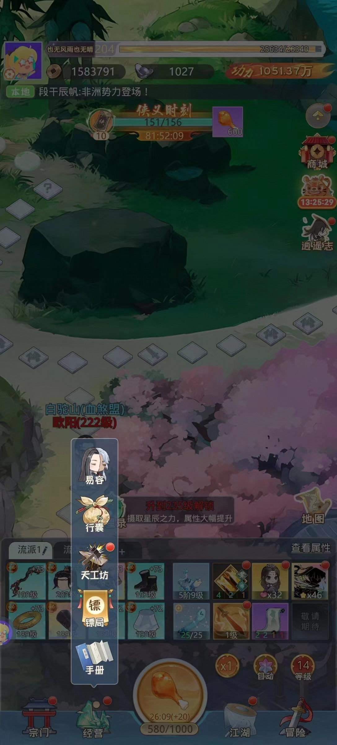 宗门装备格:可获得指定属性装备,同时品质大幅提高,出售可获得经验、金币。