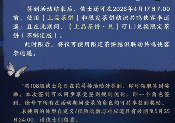 4、规定侠客于2025年4月17日7:00之后才会离开游戏。