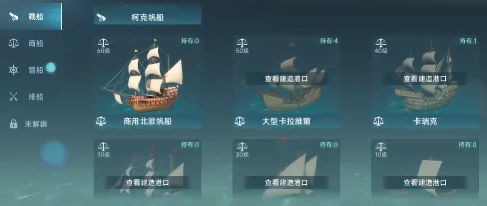 排船造成的伤害,其关键并非取决于火炮,而与船的基础近身搏斗伤害、船长以及冲锋队长的能力紧密相连。排船更着重于近距离的贴身战斗,借助船上大量的水手展开登船战斗,或者撞击敌方船只,凭借强大的近身攻击力量,对敌方予以沉重打击。 在游戏里,商船是开展贸易活动的关键工具。商船一般具备较快的航行速度,这让它们得以在各个港口间迅速往来,降低贸易运输过程中的时间成本。快速的航速助力商人把握市场契机,及时把货物运送至价格较高的港口售卖,进而获取更为丰厚的利润。