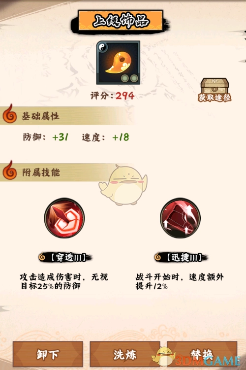 在《火影忍者木叶高手》游戏里,饰品是提升玩家实力的关键途径之一。每件饰品都具备基础属性与附属技能,紫色及更低品质的饰品会随机出现1个1 - 3级的技能,而橙色饰品则能够拥有两个附属技能。建议优先挑选橙色饰品。