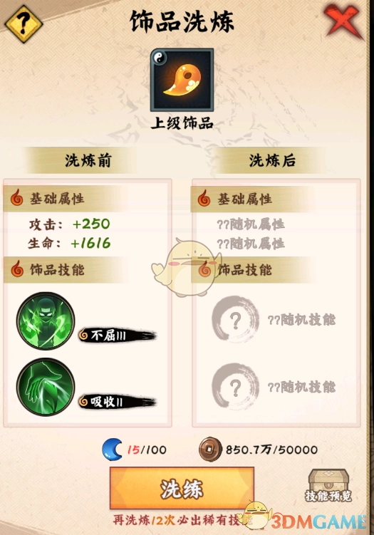 饰品技能设定:每件饰品均具备基础属性与附属技能,附属技能划分为1 - 3级。紫色及更低品质的饰品,会随机获得1个1 - 3级的技能;而橙色饰品则能够拥有两个附属技能。要是玩家对饰品的附属技能感到不满意,可通过消耗材料进行洗练操作。