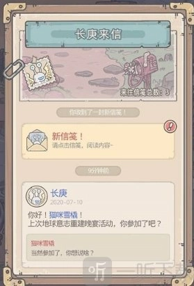 3、在邮箱里,我们会收到长庚寄来的信,和他对话之后,他就会亲自上门发放礼物。