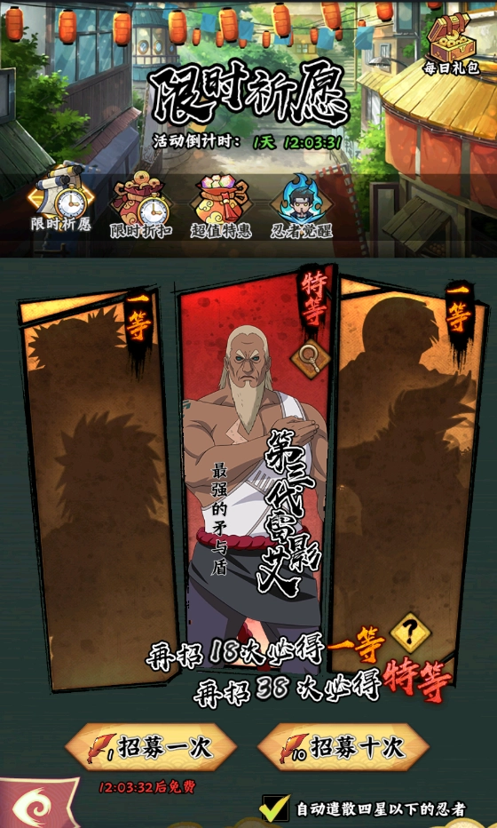 本次开启的限时祈愿活动仅有3天,想要获得这个忍者的玩家得赶紧行动了。下面讲讲雷影目前的获取方式: