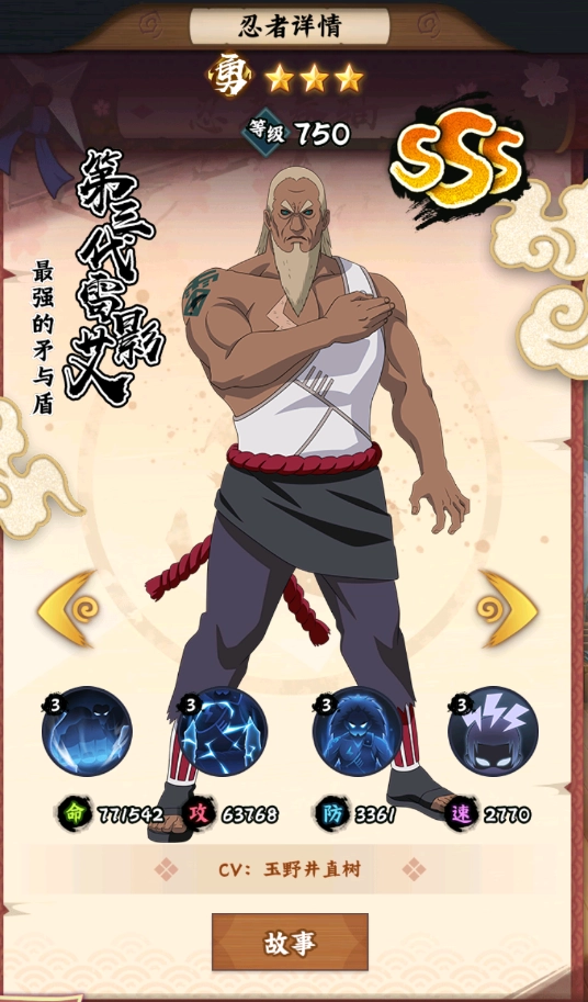 第三代雷影艾,其肉体锤炼得仿若钢铁,强韧无比,堪称守护村民的坚实盾牌。他的手刀锋利至极,竟能切断尾兽的尾巴,恰似可贯穿入侵村子敌人身体的锐利长矛。他具备超群的战斗力,长久以来一直是民众的精神支柱。接下来,一同瞧瞧《火影忍者:木叶高手》中SSS雷影忍者的介绍吧!