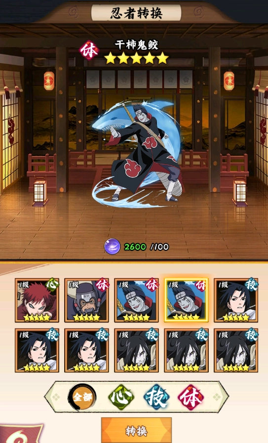 消耗转化材料,有概率将手上的任意SSS转换成其他SSS忍者,不过这一步随机性较大,还是谨慎使用。