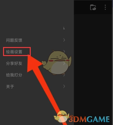 1. 开启画世界app,当进入画世界主界面之后,轻点左上角的“小人”图标,接着在弹出的窗口里点击“绘画设置”选项。