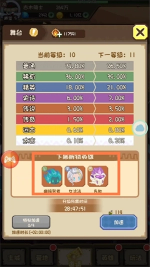 3、要是想玩得酣畅淋漓,那必然得解锁更多英雄来自由搭配。因此,只有尽快升级舞台,才能解锁更多英雄。获取邀请函和人气的方法我就不多说了,大家尽量把舞台等级升得高一些。稍微小额充值一点,就能快速提升到10级,2倍邀请速度,体验超棒。