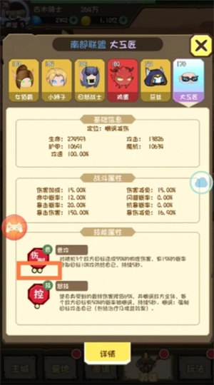 2、英雄品质会对技能等级产生影响,当点击英雄查看技能时,技能下方会出现小点。技能等级在英雄达到传奇品质后会有所变化,因此建议优先选用传奇品质及以上的英雄。特别强调:品质的优先级高于属性值,许多英雄的技能等级至关重要。例如,小狮子的怒气技能为群体恢复上限,传奇品质下恢复10%,远古品质下则恢复20%,这堪称是质的飞跃。