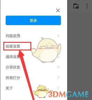 2、进入画世界主界面后,点击左上角的“人”图标,随即左侧会弹出一个扩展窗口,此时点击“绘画设置”选项。